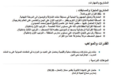حفظ القرآن الكريم كاملاً ومثل بلده اليمن